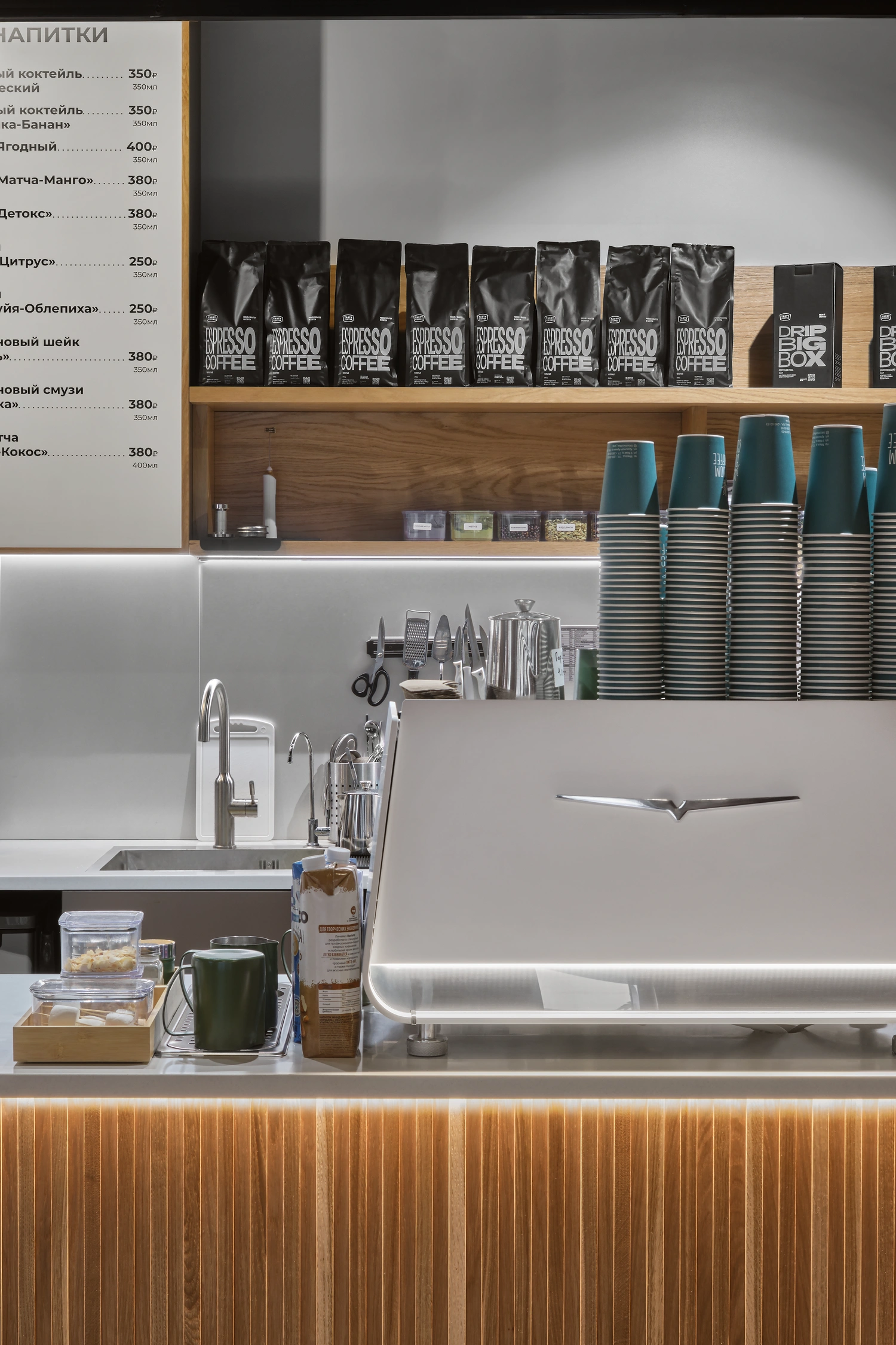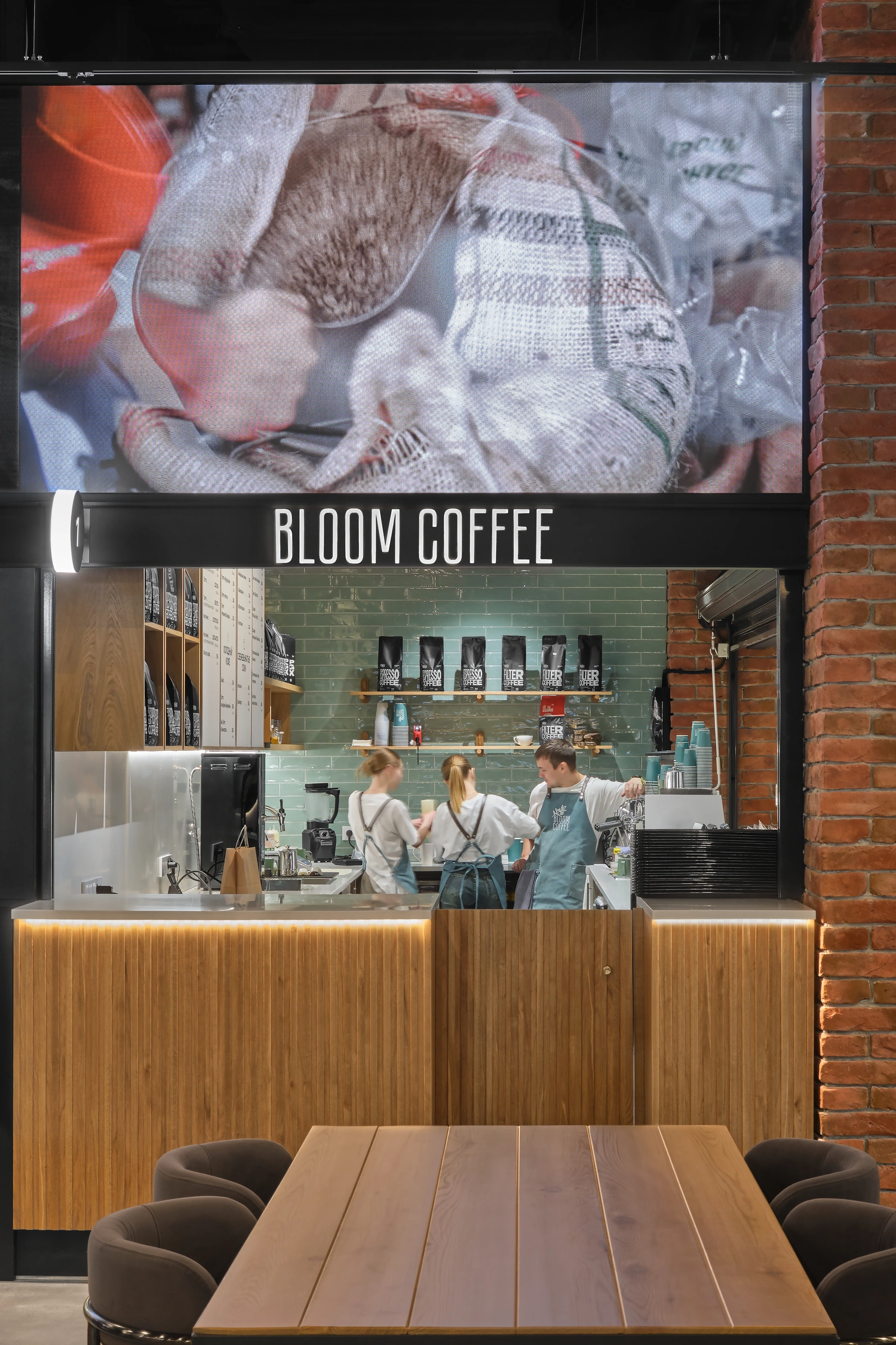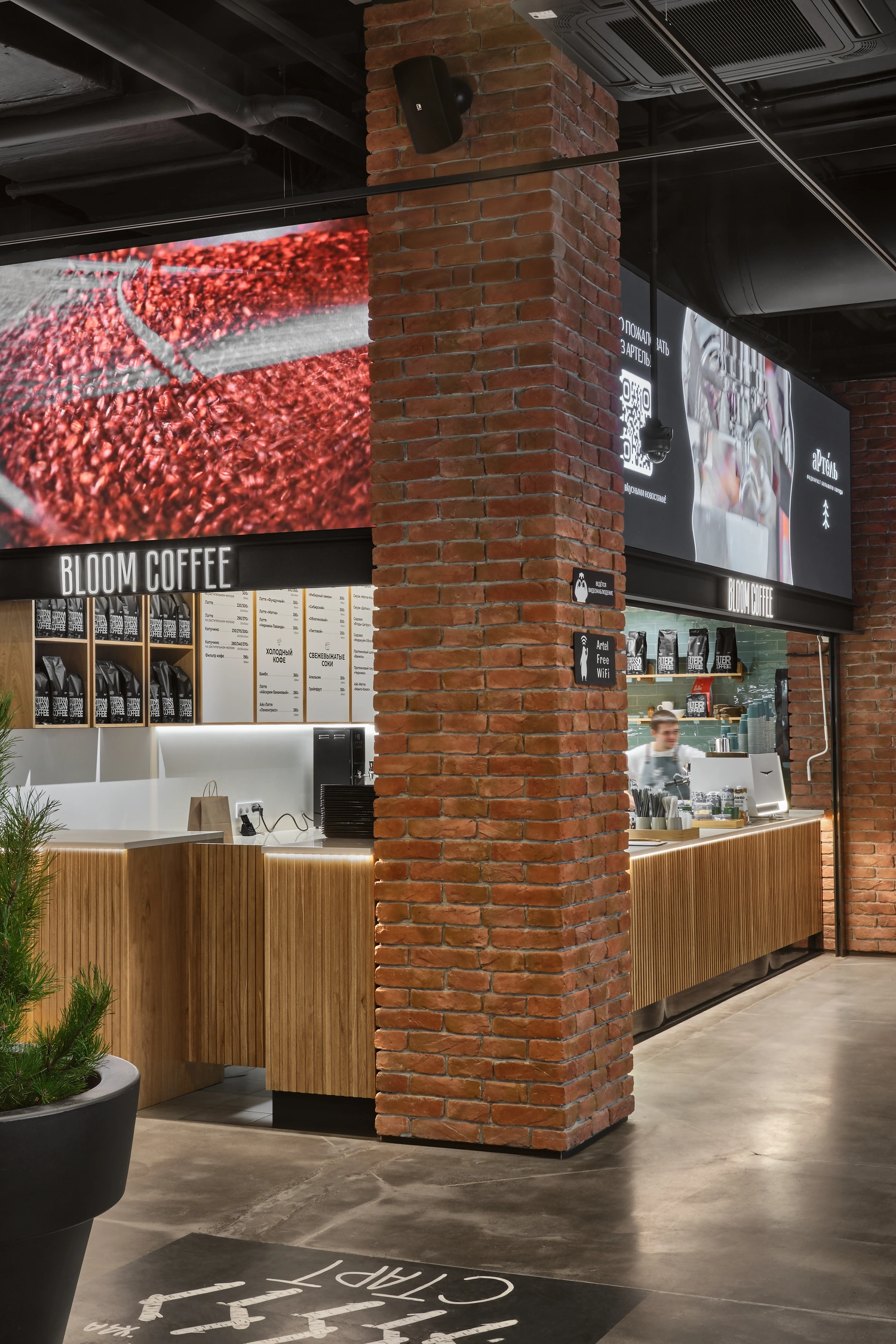 Корнер любимой кофейни встречает гостей на главном входе в гастрономический квартал с раннего утра.