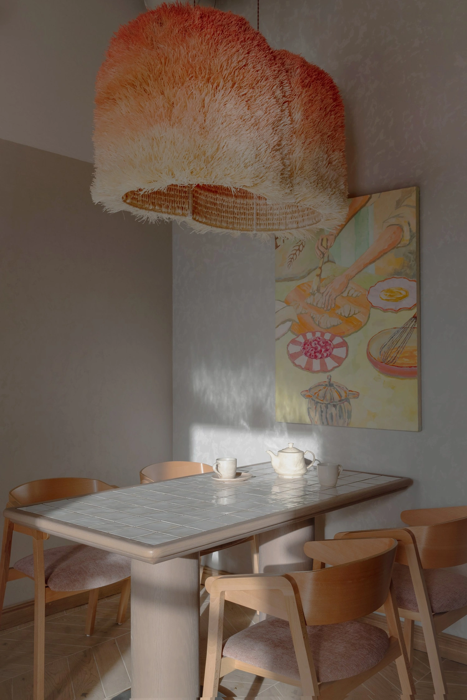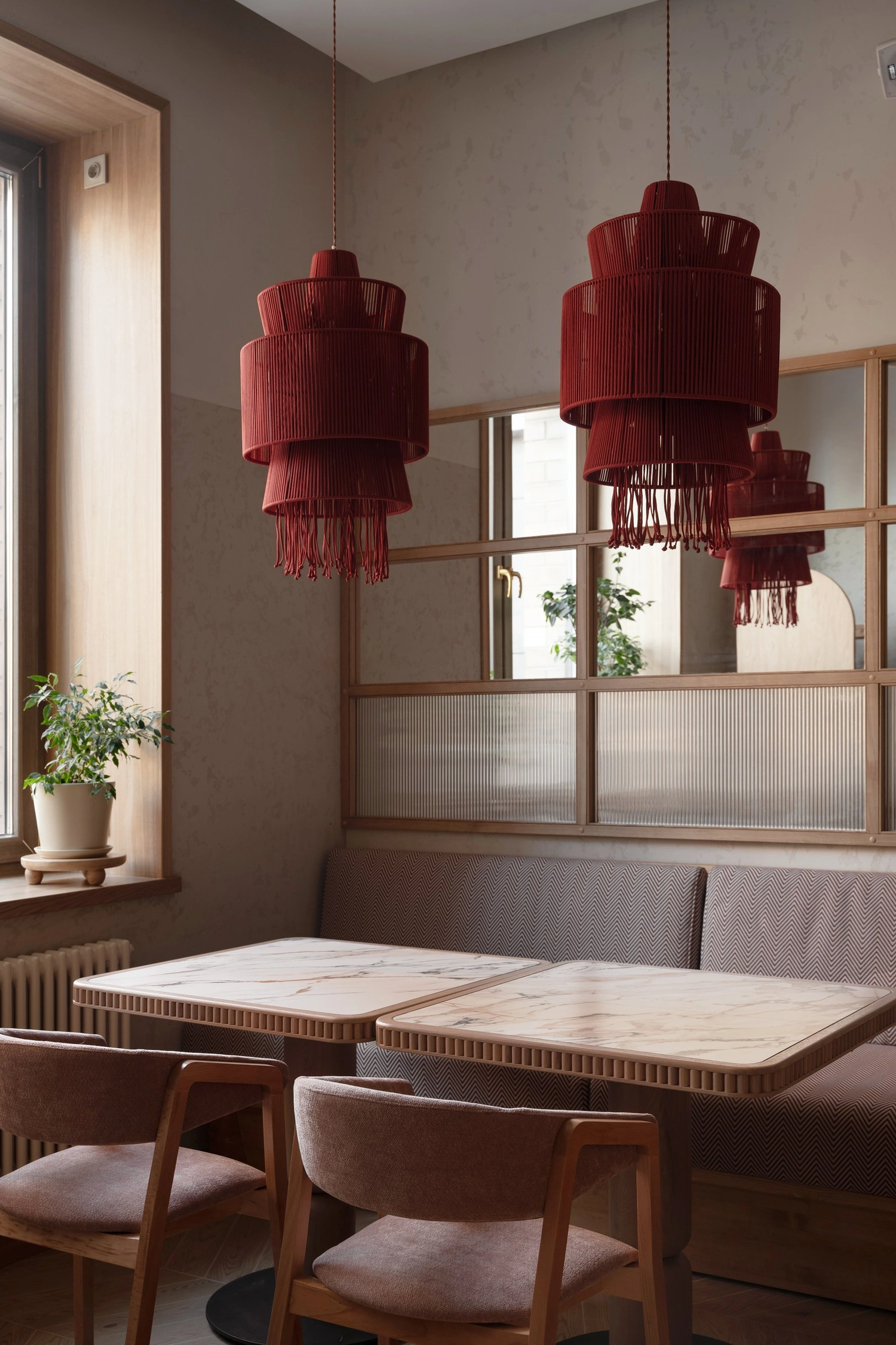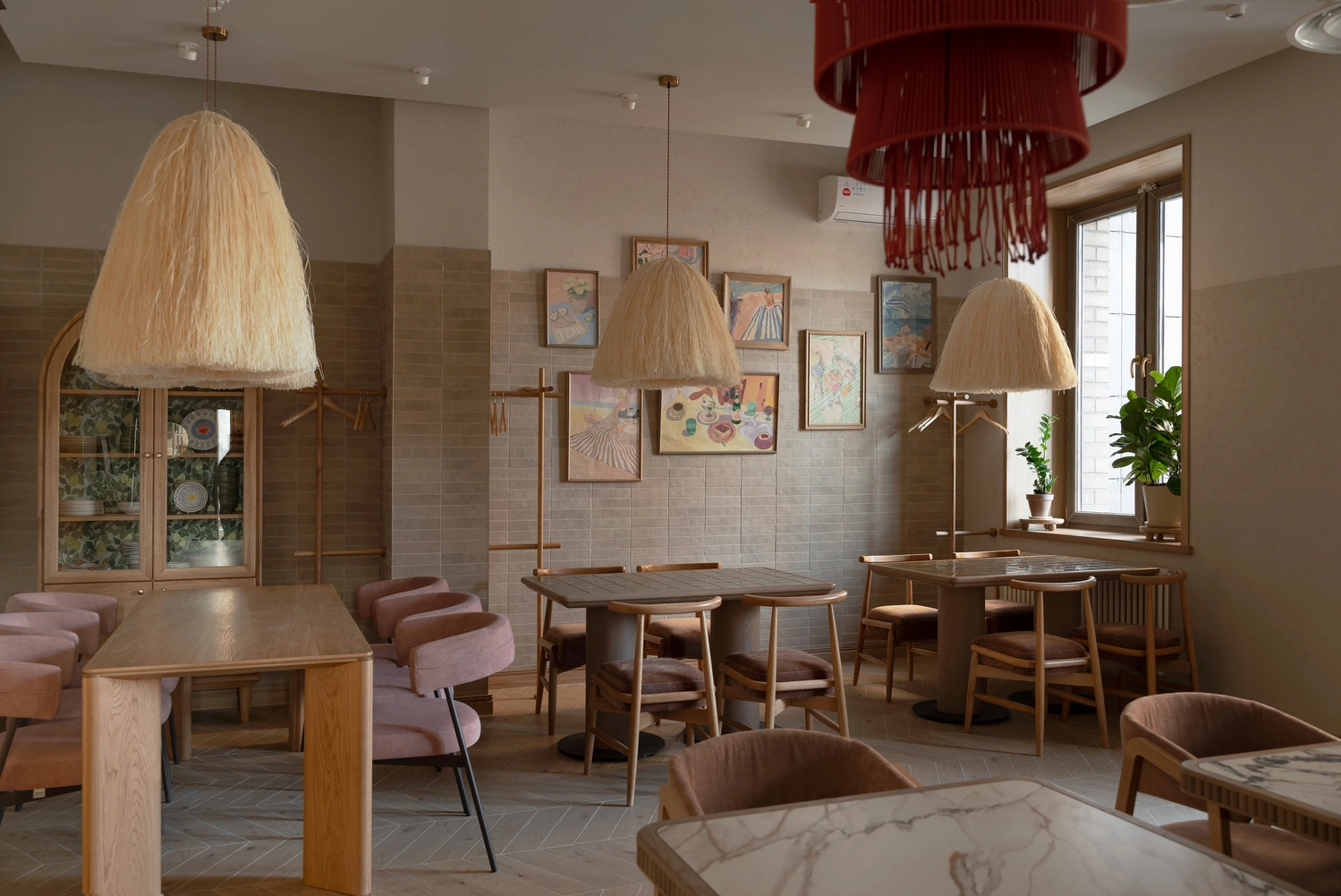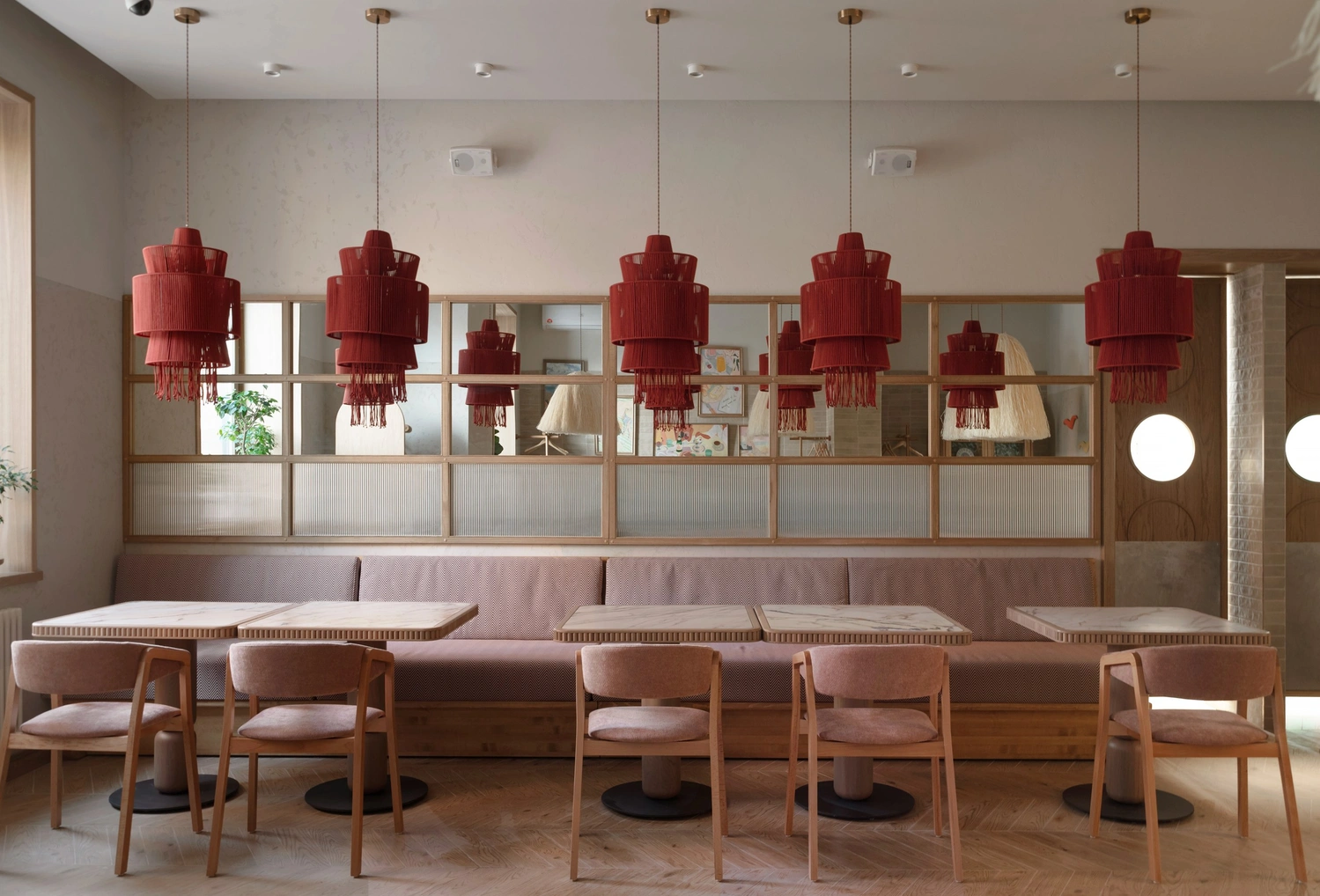 Мы собрали проект с нуля: от идеи названия, поиска фирменной стилистики, и до контроля процесса создания, личном присутствии на стройке. Опыт работы над дистанционным проектом стал новым этапом в развитии нашей большой команды, это особый уровень доверия. Проект собран из заказных элементов, которые изготавливались по нашим чертежам, большинство элементов мебели и декора ехало в Забайкальский край из Красноярска. В интерьере Луи много дерева, цветной керамики, принтов, получился милый сердцу европейский теплый образ.