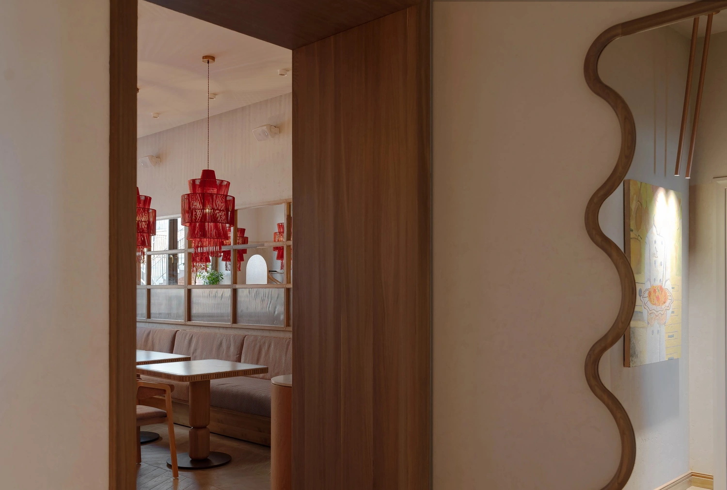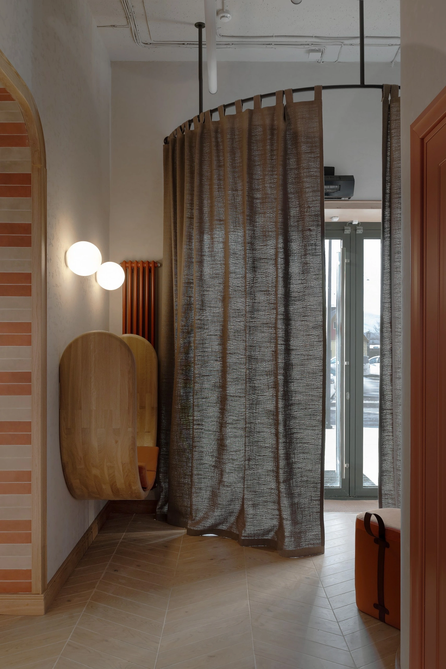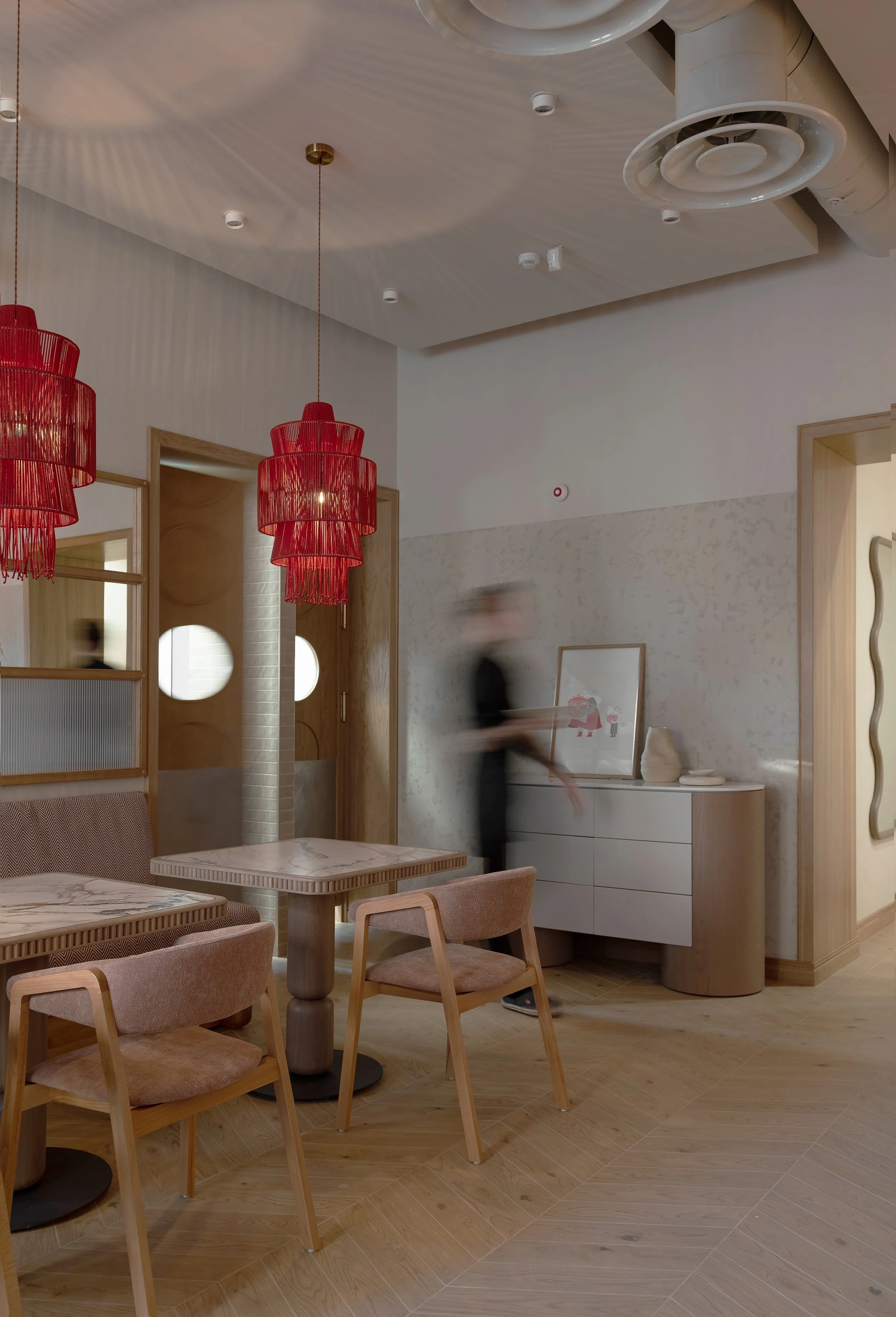 Мы собрали проект с нуля: от идеи названия, поиска фирменной стилистики, и до контроля процесса создания, личном присутствии на стройке. Опыт работы над дистанционным проектом стал новым этапом в развитии нашей большой команды, это особый уровень доверия. Проект собран из заказных элементов, которые изготавливались по нашим чертежам, большинство элементов мебели и декора ехало в Забайкальский край из Красноярска. В интерьере Луи много дерева, цветной керамики, принтов, получился милый сердцу европейский теплый образ.