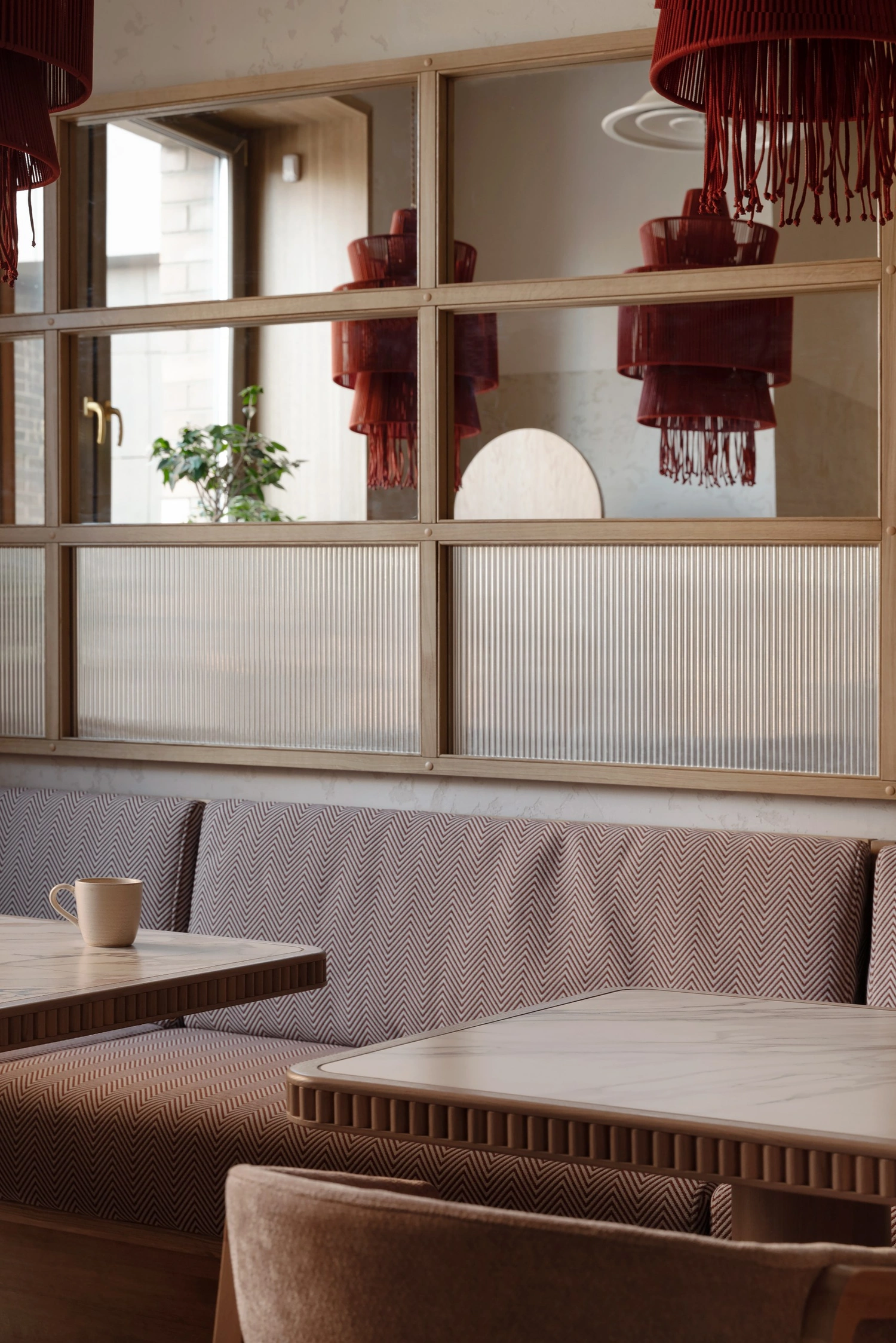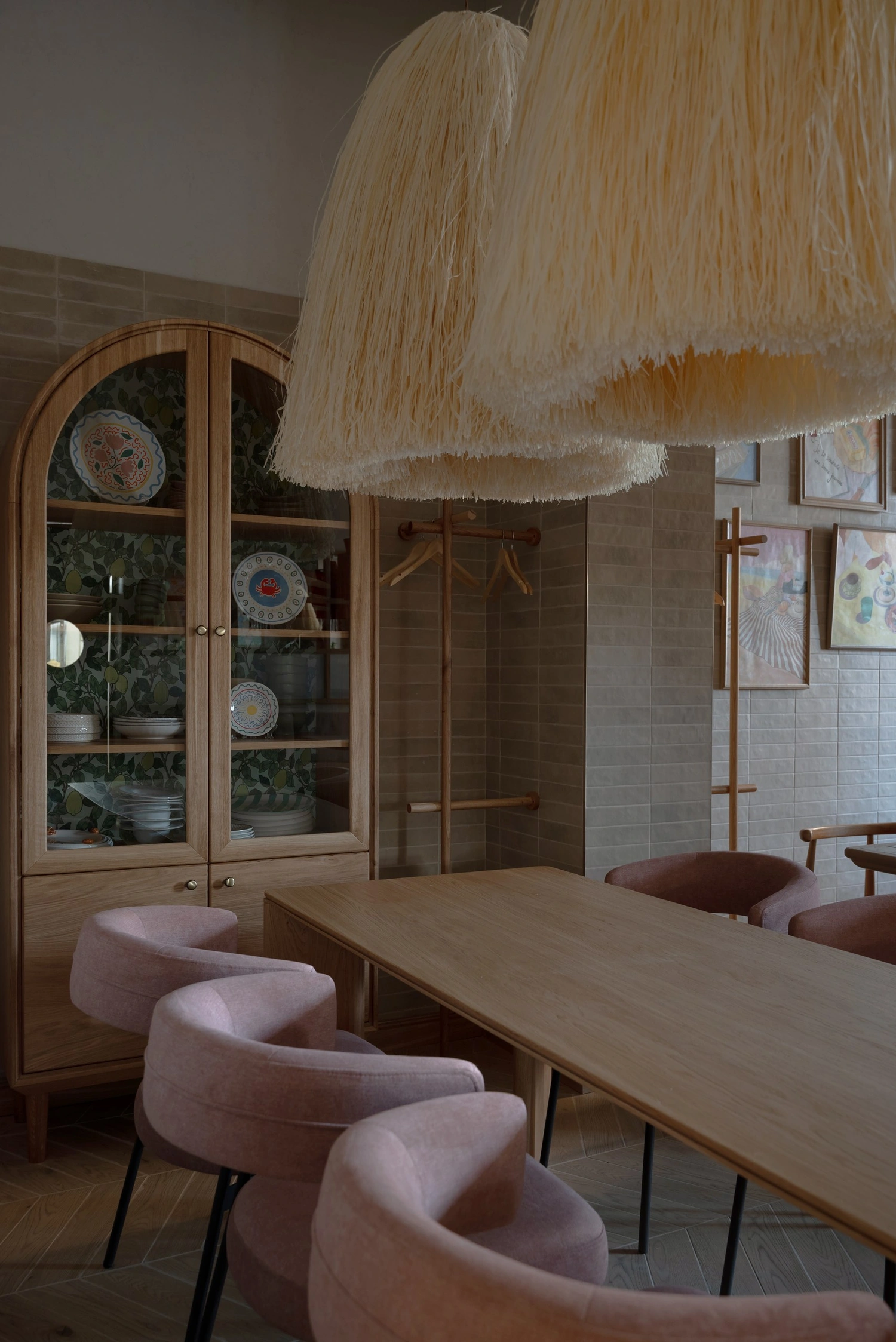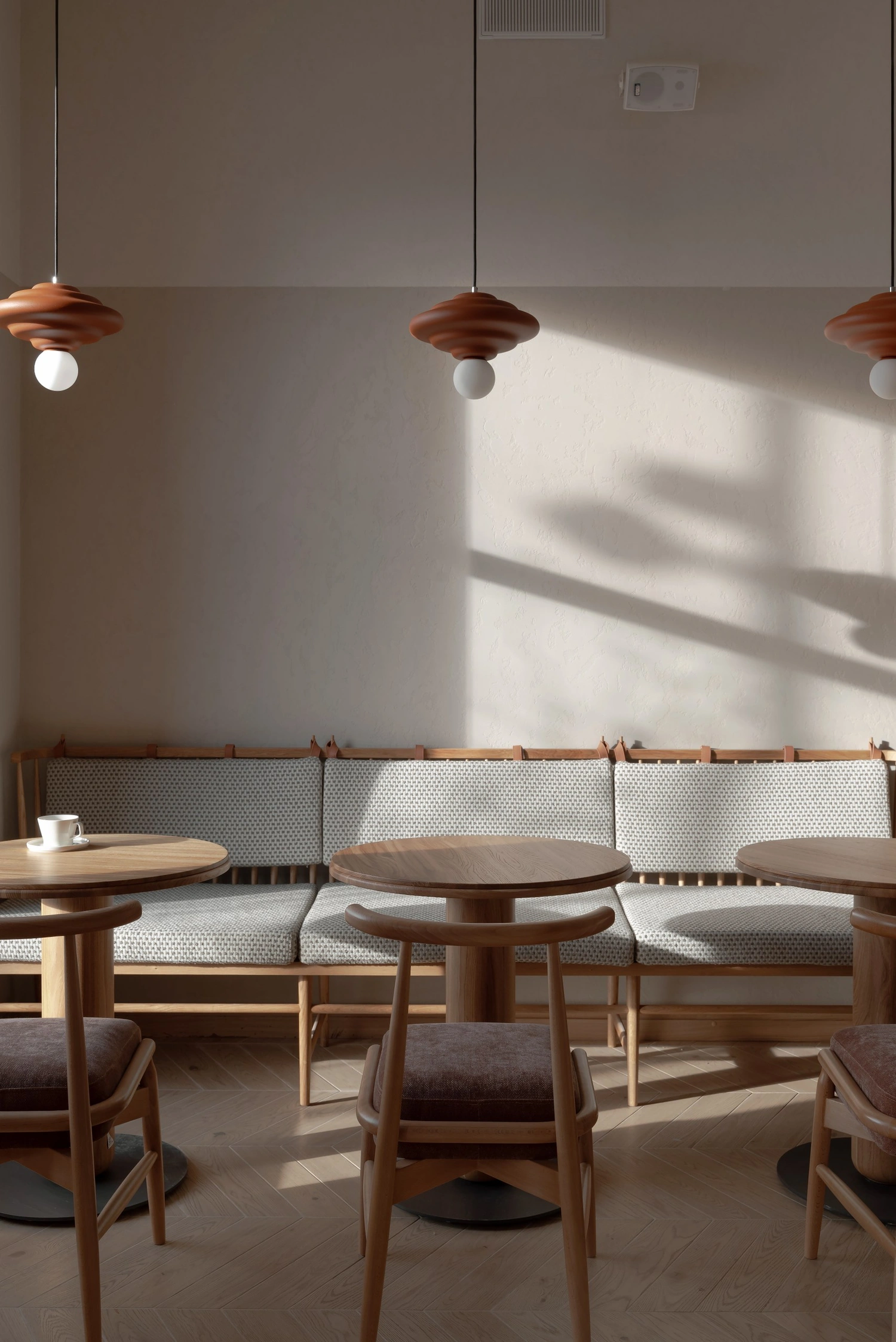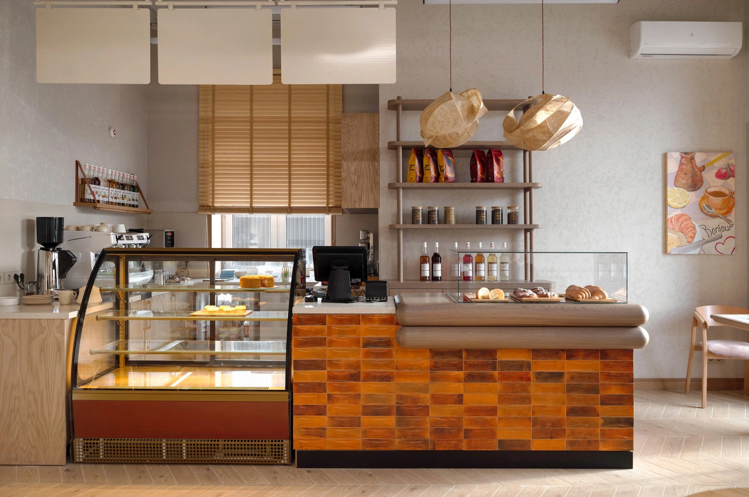 Мы собрали проект с нуля: от идеи названия, поиска фирменной стилистики, и до контроля процесса создания, личном присутствии на стройке. Опыт работы над дистанционным проектом стал новым этапом в развитии нашей большой команды, это особый уровень доверия. Проект собран из заказных элементов, которые изготавливались по нашим чертежам, большинство элементов мебели и декора ехало в Забайкальский край из Красноярска. В интерьере Луи много дерева, цветной керамики, принтов, получился милый сердцу европейский теплый образ.