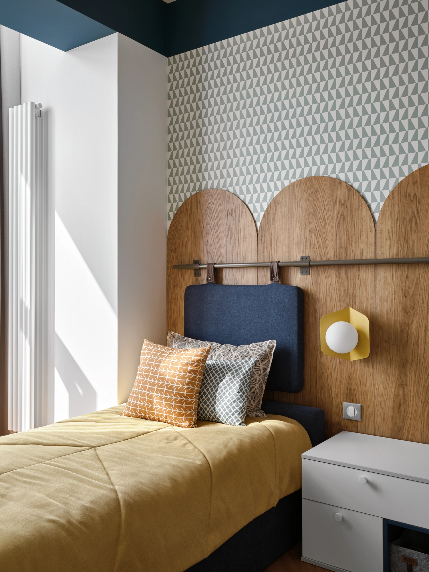 Нам удалось создать красивое и функциональное пространство, где нашлось место и для мастер-гардеробной, и для большой детской “на вырост”, и ванной комнаты с окном.
